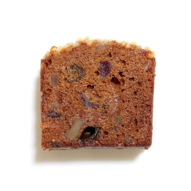 クルミとドライフルーツ(オレンジ、レモン、レーズン)がアクセントで入ってる。