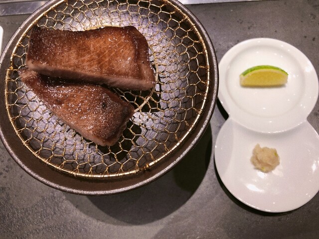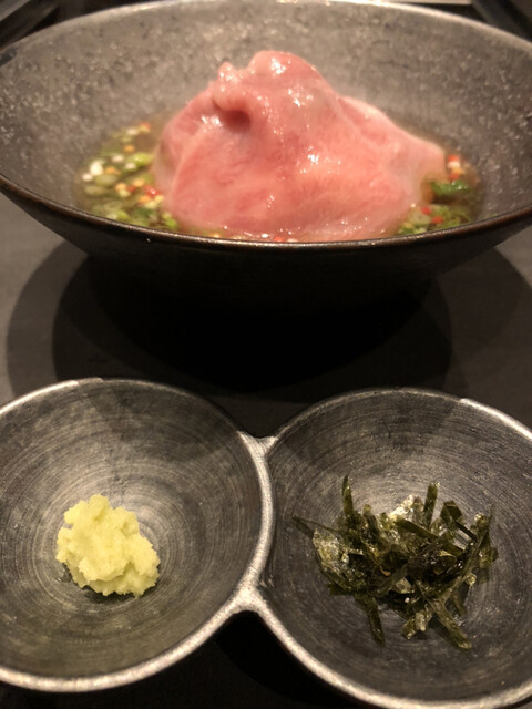 厚切りタン元、芽ネギタン巻き、からすみ塗し