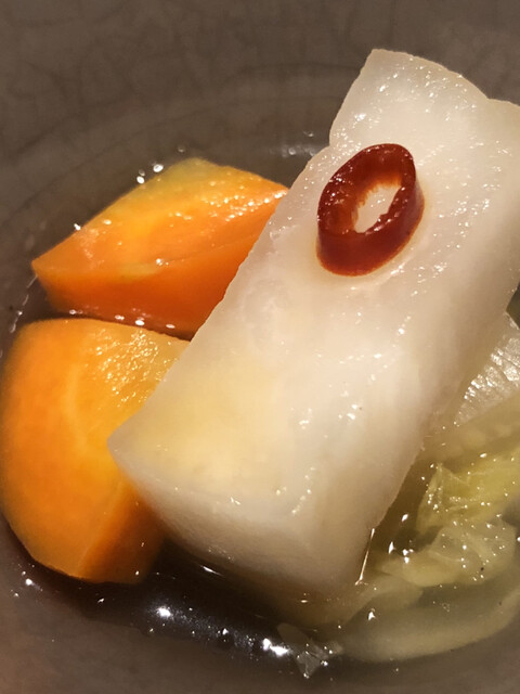 優しい甘味をもつカブに、魚介の旨みがしっとり染み込み、温かみのある味わい。