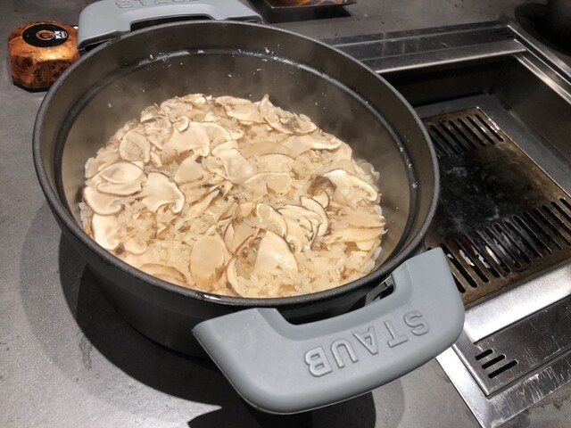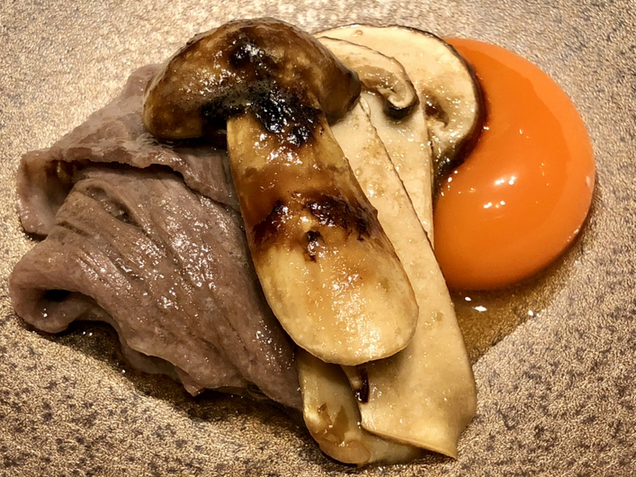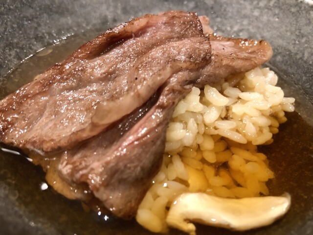 松茸の香りが真っ直ぐに立ち上がり、イチボのコクがその香りを包み込みます。