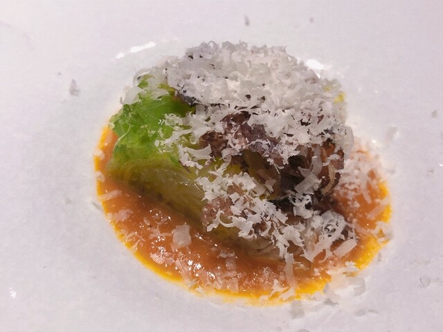 口に含むとポルチーニの深い香りが広がり、鮑の優しい旨みと重なり合う繊細な仕上がり。