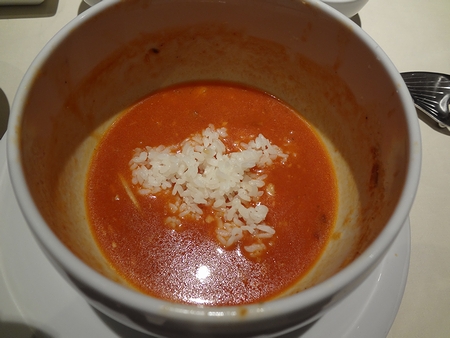 三浦半島でとれたトマトが使われています。トマトはとっても甘味があります。蔭山楼の濃厚な白湯スープと新鮮トマトのコラボレーション。スープはさっぱりとしています。開化楼の特製太麺が使われています。太くてちぢれていてモチモチの食感です。麺を食べ終わった後には半ライスをスープに入れて雑炊風にしていただきます。デザートには杏仁豆腐。これも美味しい。何を食べてもとっても美味しくてまた食べに行ってみたいです。