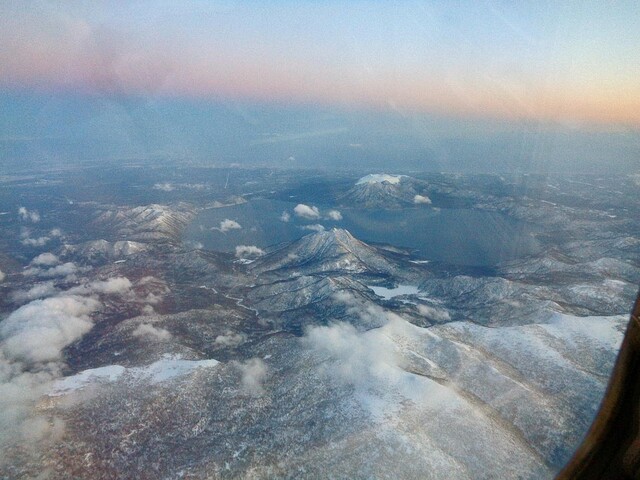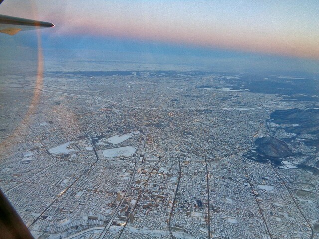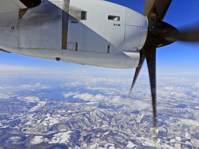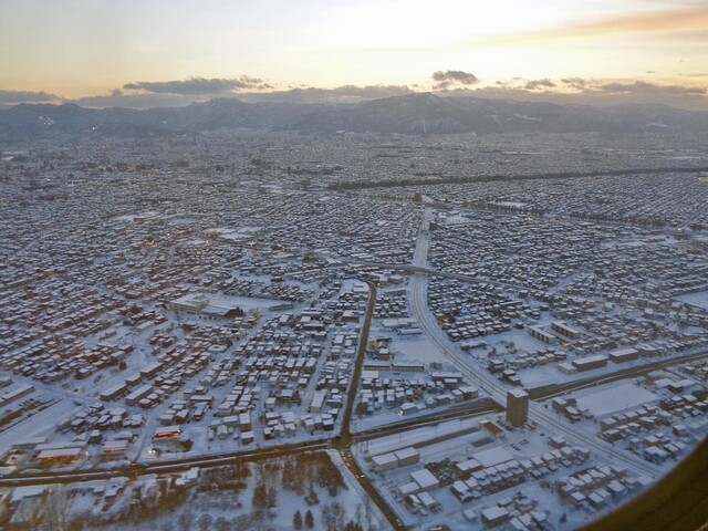 ⑫〜⑭ 復路(丘珠→新潟)便からの眺め:札幌市街地,支笏湖