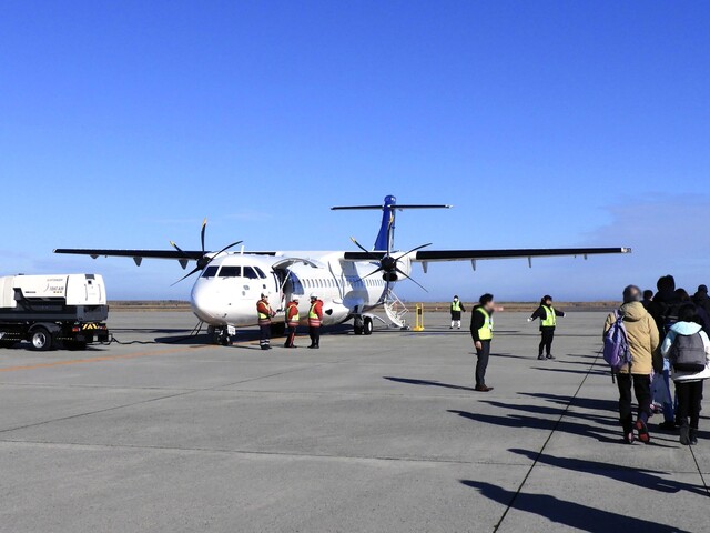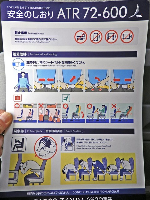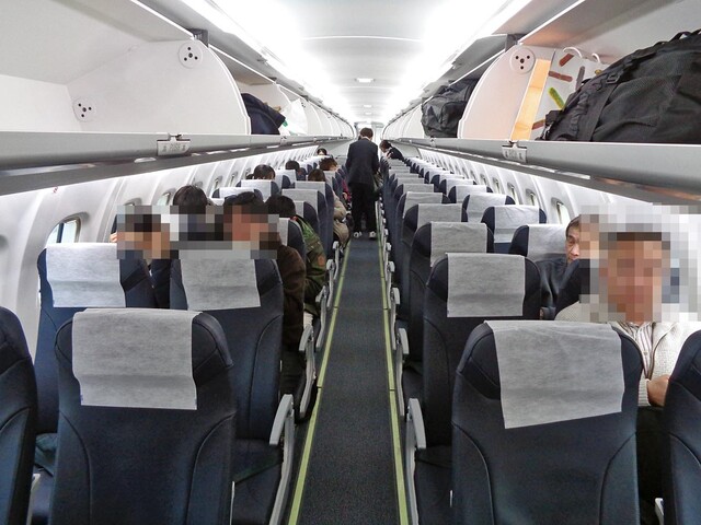 (3)機材が小型なので(ATR72-600),ボーディングブリッジは使用できず,タラップを使って搭乗する.また,機内も狭く,荷物棚に頭をぶつけがち.