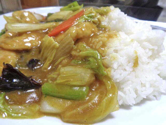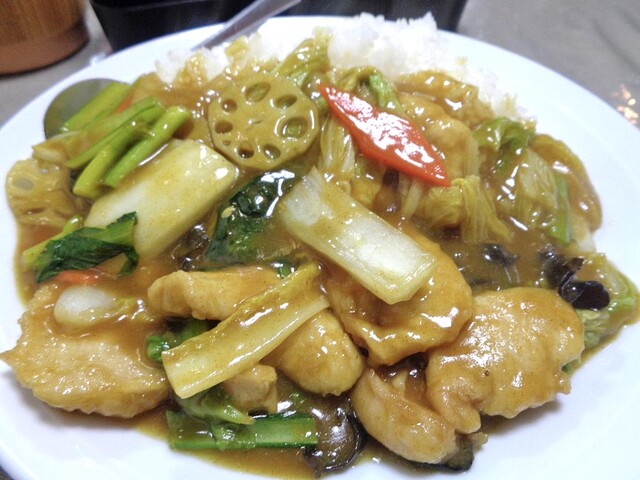 「加里鶏片飯」は,いつもの旨さです.レンコンのシャキシャキ食感がイカしてました.