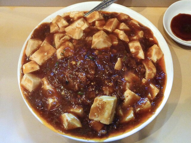 「麻婆飯(激辛)」は,いつもよりも辛さ控え目でしたが,卓上に常備されているラー油とコショウをかけると,自分好みの辛さになりました.