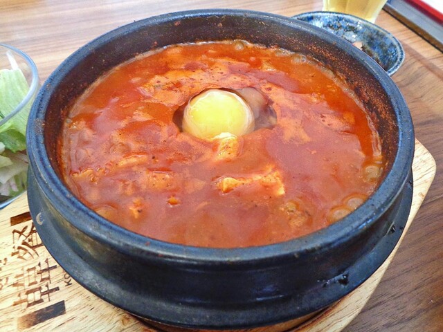 豆腐チゲランチ(激辛・ご飯大盛)& 生卵