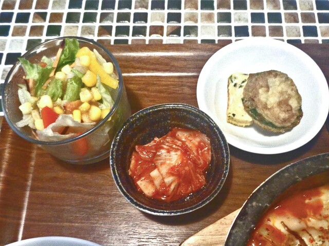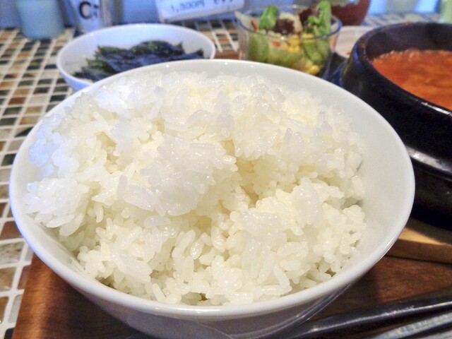 3人でおじゃまして,「豆腐チゲ ランチセット 960円」×2と,「石焼チーズタッカルビ ランチセット(辛目)910円」+「ご飯大盛 50円」(自分はコレ)を注文しました(いずれも税込み).