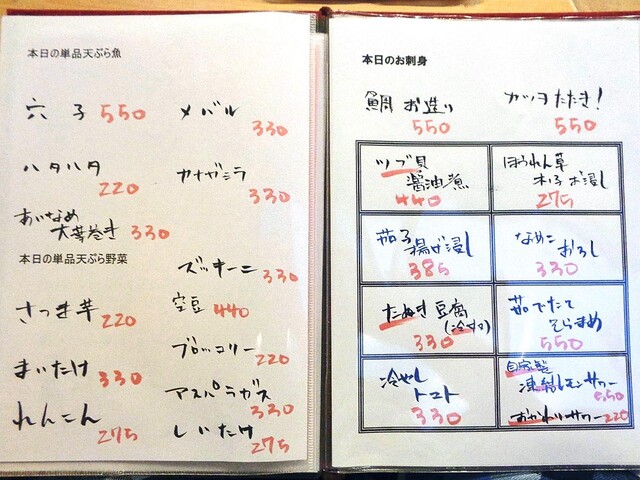 メニュー(本日のおすすめ)