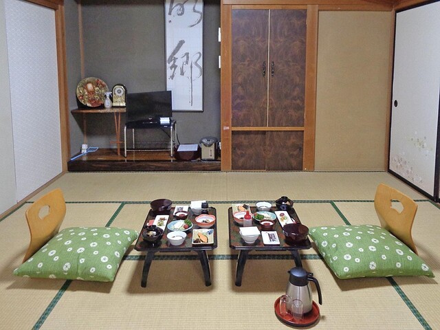 1階玄関脇の個室で いただきました.6畳間に,お膳が用意されています.他の客は,部屋食(2階の客室)だったようです.