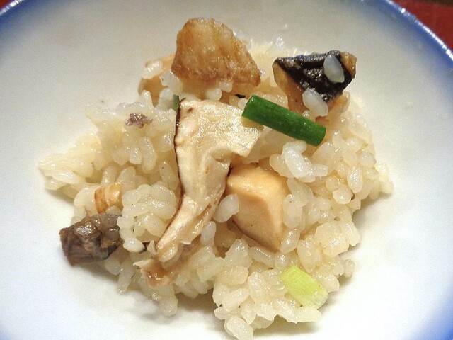 松茸の炊き込みご飯 揚げ魚トッピング & 赤だし