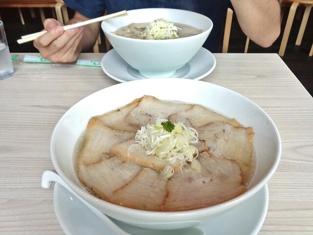2人でおじゃまして,2人とも「帆立香る会津山塩チャーシュー麺 1,200円(税込)」を注文しました.麺は3種類(中太ちぢれ麺・極太ちぢれ麺・細ストレート麺)から選ぶことができ,2人とも 中太ちぢれ麺 を選択しました.