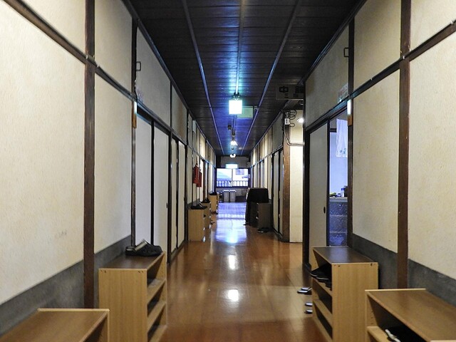 複数の建物(本館・新館・若葉荘・中館・上館)で構成されており,外観・館内ともレトロ感満点です.帳場,待合室(休憩スペース),売店(自炊用の食品も販売されています),『食事処やはぎ』,自炊用炊事場,コインランドリー,風呂,客室等がありました.