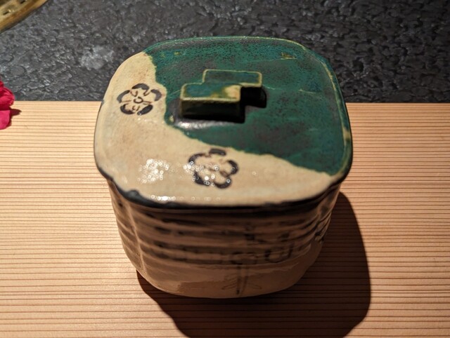 ふたを開ける前の香箱蟹の土鍋御飯(コース料理 師走)