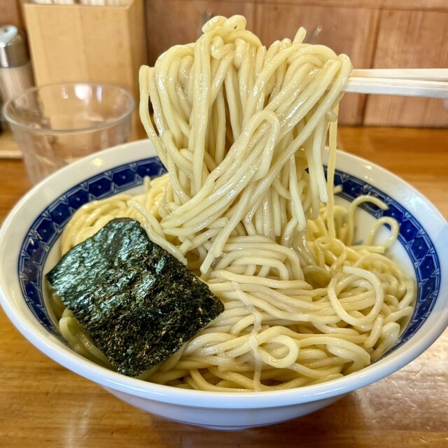 豊かな小麦の風味を感じられる中太ストレート麺。