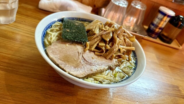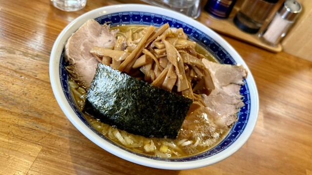 節系煮干の力強い風味とくっきりした塩ダレが先行し