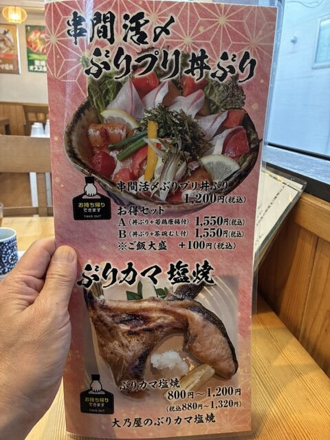 看板メニューの「ぶりプリ丼ぶり」、いいね
