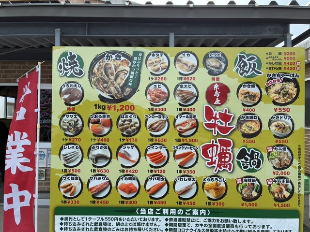 見たところ、どのお店も牡蠣1kgで1,200円で同じ料金なので、適当にお店を決め入りました。