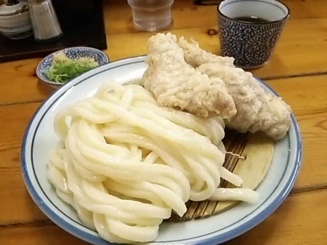汁うどんはさっき食べたので、ざるうどん+かしわ天ぷら で。