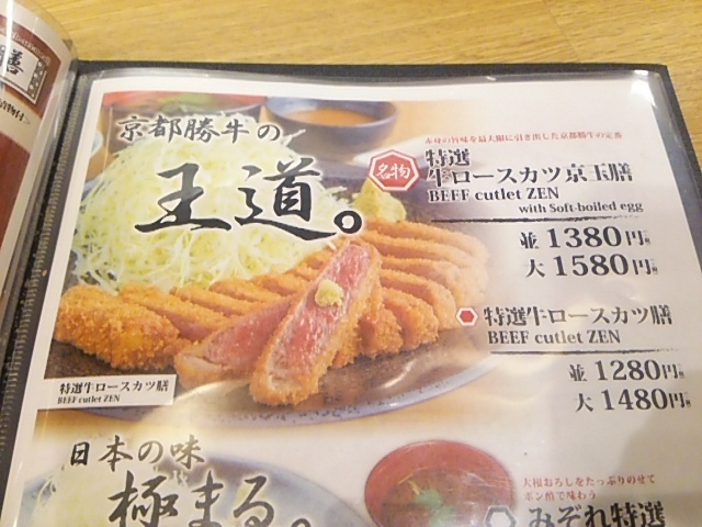 牛ロースカツ膳並1382円 130グラム