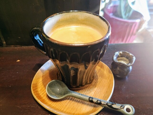 コーヒーは炭焼きのような味で、苦味と深みが有ってガツン感アリアリ。