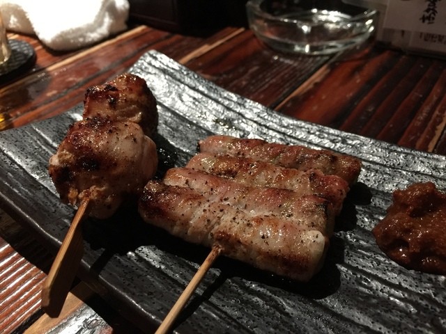 白レバー・ハツモト・トマト巻き・ピーマンチーズ巻きを注文。