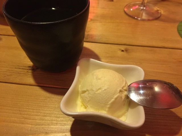 アイスは普通のバニラアイスだけど、怒涛のニンニク攻勢の後では一服の清涼剤です。