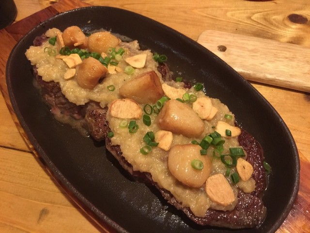 ニンニクソース・スライスガーリック・ガーリック丸ごと(揚げ?)というガーリック一点攻めなステーキ。
