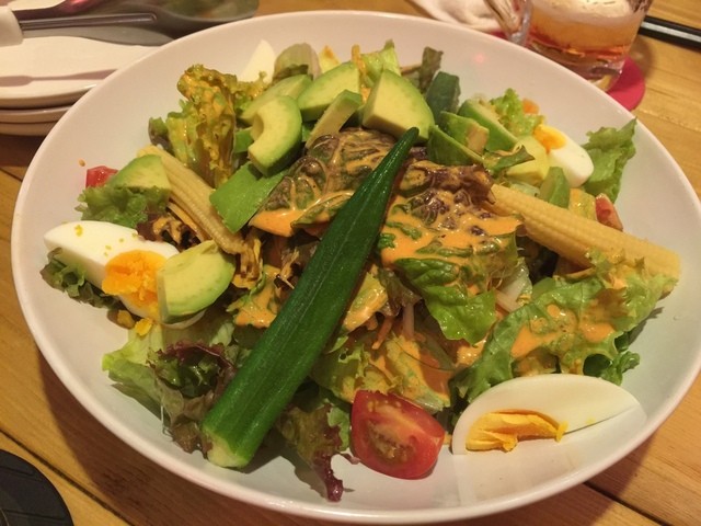 レタス・ベビーコーン・ミニトマト・オクラ・ゆで卵・アボガド。