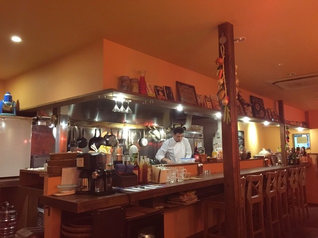 調理担当とホール担当それぞれ1人ずつ、かなり忙しいながらも黙々とテキパキ調理するキッチン担当のお兄さん、