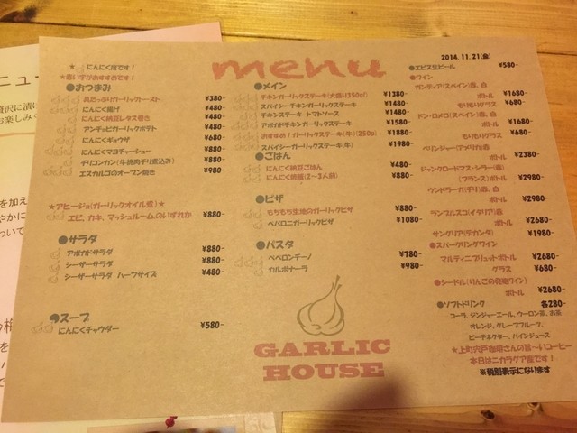 家族で忘年会を行うにあたってリベンジとばかりにまたガーリックハウスさんにお邪魔しました。