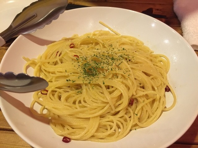 あっさりトマトソースとフライドガーリックのインパクトがベストマッチです。