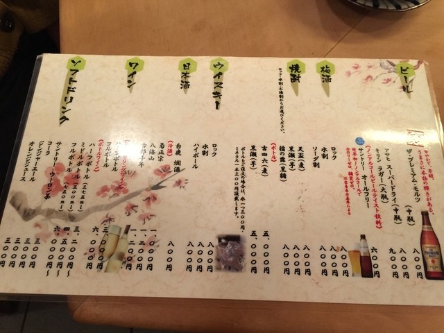 その後にメニューを確認。金額が書かれていません、ちょっと怖いな^^;