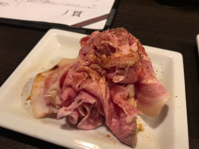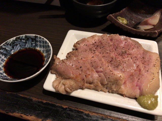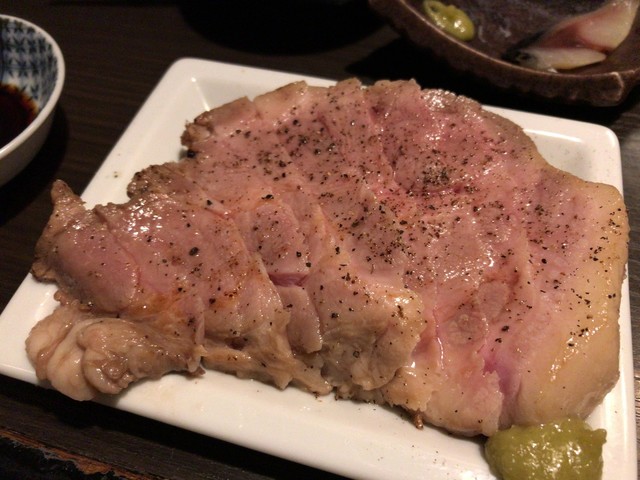 厚切りの豚肉をレアに焼きあげた一品。これに甘めの醤油とわさびがすごく合います。
