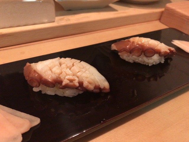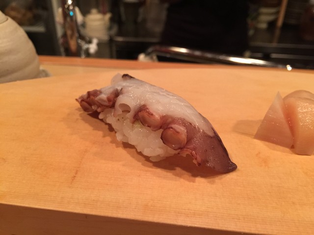 63℃タコ、生ともボイルとも違う食感、これがすごく良い。醤油でなく塩味の握り。