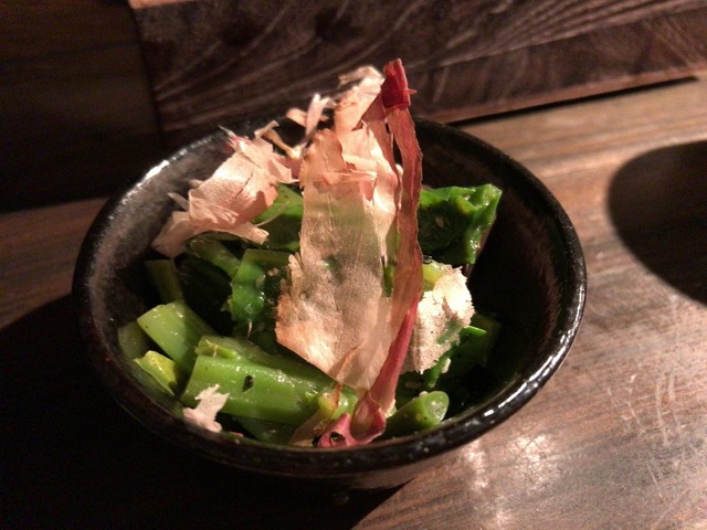 お通しはつるむらさきのおひたしでした。