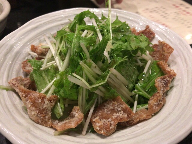 水菜と鶏皮のサラダ