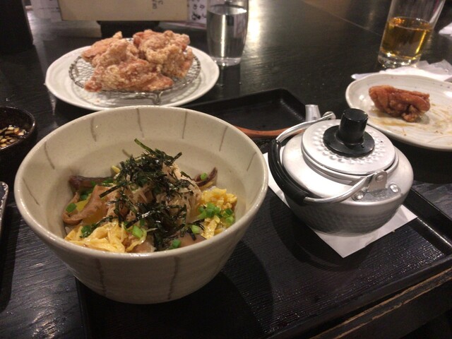 まずはお酒と焼き鳥と思ったけれど後輩が腹減ったというので唐揚げ特盛とかまど飯をオーダー。