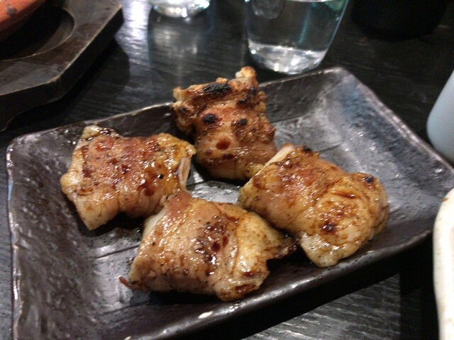 まずは豚バラ巻きで様子を見つつ、お店の名物「皮」を注文。