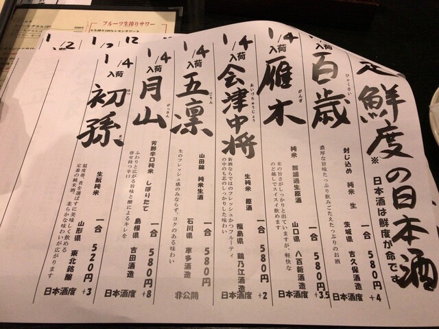 お酒の種類が少なかったのは年始めだからかな?