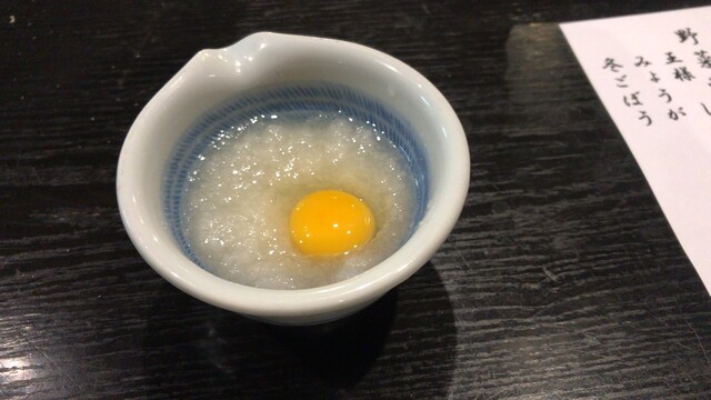 お通しも毎度変わらずな大根おろし&生卵ですね。