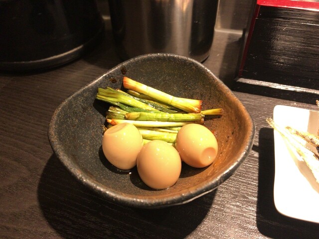 ネギとうずらの醤油漬け。