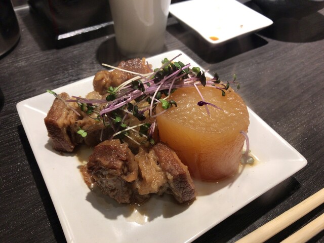 甘い醤油ダレが染みたホロホロプリプリな牛バラ肉と柔らか大根が旨い。
