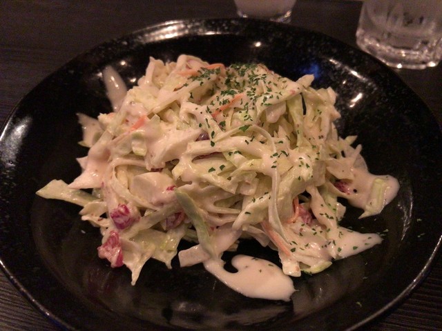 サラダを頂いてから馬メンチ。馬肉っぽさは無いけれど結構美味しいメンチ。
