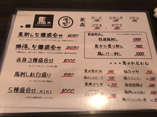 馬刺しは単品から盛り合わせ数種類と色々選べるのが良いですね。