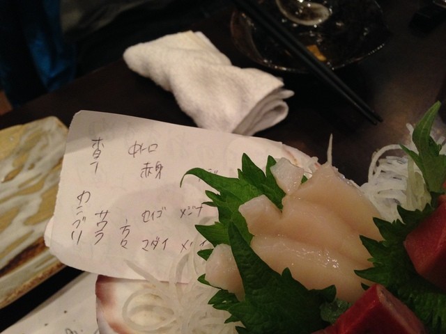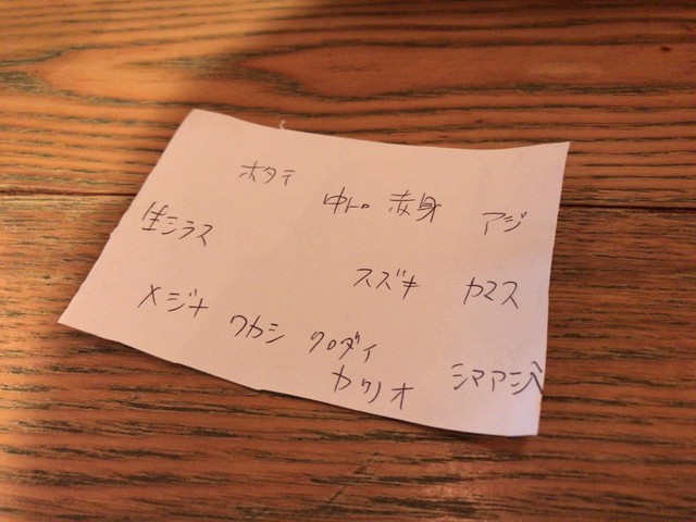 しっかり説明してくれるし、魚種を書いたメモを置いてくれるのもGOODです。