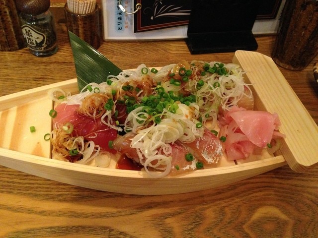 この日は、ホタテ・中トロ・赤身・鯵・生シラス・スズキ・カマス・メジナ・ワカシ・黒鯛・鰹・縞鯵。