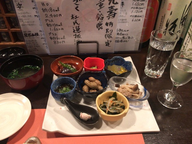 このお店の名物、八寸+椀物。1280円(税別)という金額ですが、これだけ出されればむしろお得なくらい。