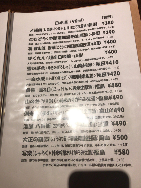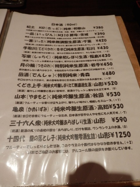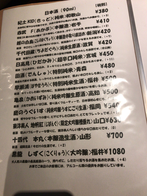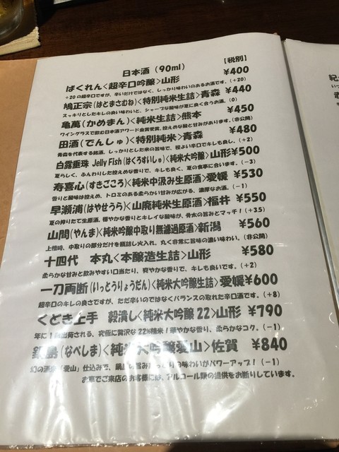 毎回ながら多すぎる日本酒メニュー、どれにしようか迷ってしまいます。