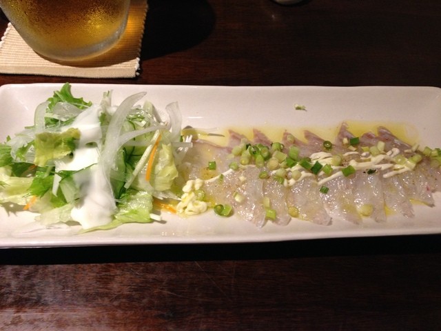 お通しを食べつつ、シマアジの刺身を注文。